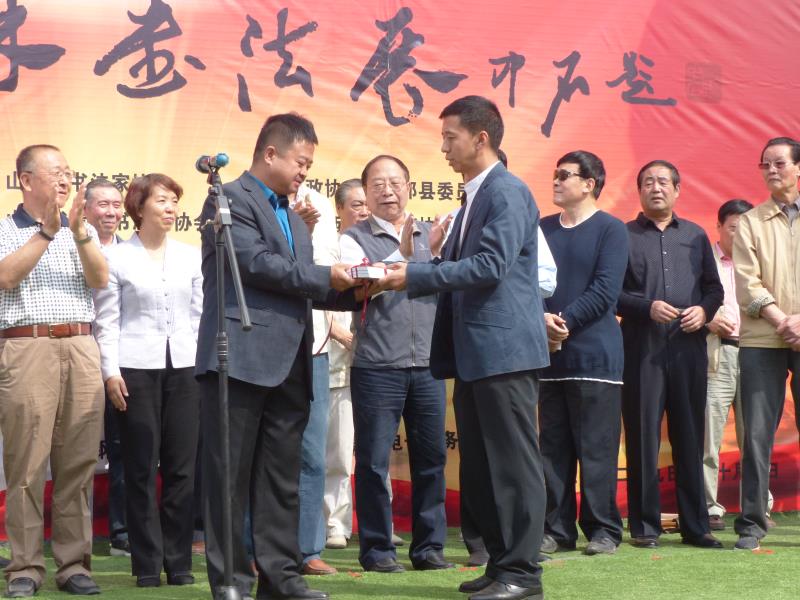 9月29日,由山西省書法家協會、政協山西省祁縣委員會聯合主辦,縣政協教科文衛體和學習委、山西晉商文化研究所、山西盛大鋼結構工程公司、山西美璃電子商務公司等14家單位承辦的“喜迎十九大翰墨抒情懷”頡林書法展在祁縣開展。山西省書法家協會顧問、大眾書畫院常務副院長兼秘書長郝志遠宣布書法展開展,縣委副書記李軍榮致辭,縣政協主席李郁明主持,縣政協副主席王建剛、申建平及縣政協部分委員、各界人士代表出席。開展儀式上,頡林先生向山西盛大鋼結構工程有限公司董事長、山西美璃電子商務有限公司董事長賈怡明先生贈送了書法作品,以表盛大鋼構和美璃電商對本次書法展的大力支持。