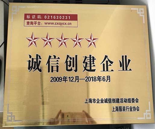 在上海服裝行業(yè)協會舉辦的2017上海市企業(yè)誠信創(chuàng)建活動中,公司獲得五星銅牌。